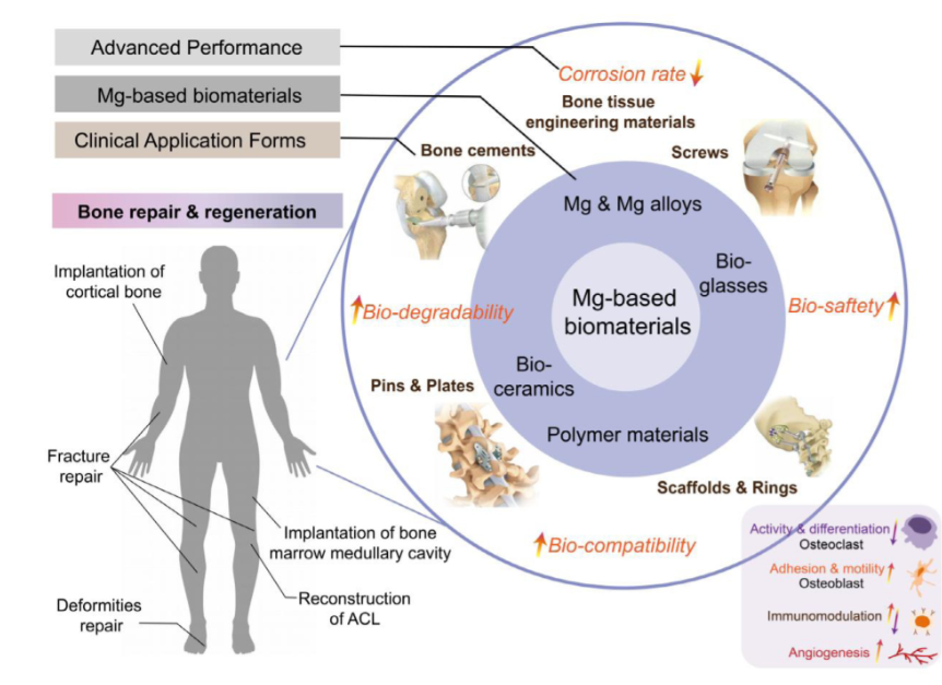 Figure 1 The utility types of diverse magnesium-primarily based totally biomaterials and their corresponding physiological processes [52].