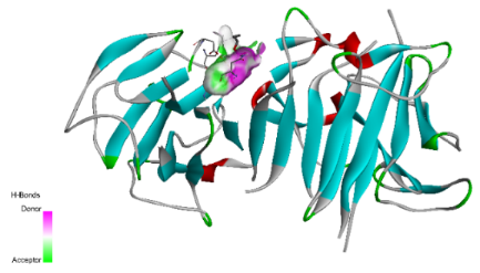 Nature of these contacts are: Normal hydrogen bonds, Carbon-hydrogen bonds Unfavorable acceptor–acceptor interactions Alkyl and π-alkyl interactions. These results demonstrate that A41 interacts with structural and potentially functional areas of the L-type calcium channel and reveal its mechanism of action and potential pharmacological relevance.