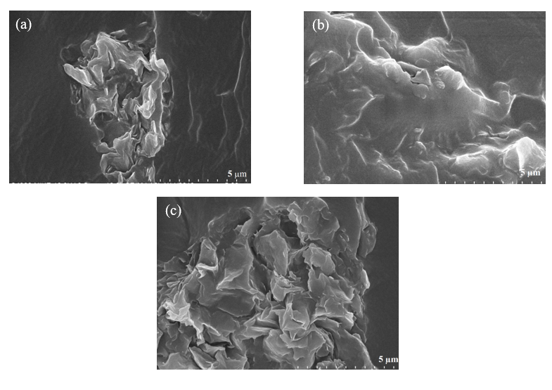 Figure 1 Structural morphology of PVA/nanoclay I.30E nanocomposite membrane materials: (a) - PVA/1.0 wt% Nanoclay; (b) - PVA/3.0 wt% Nanoclay; PVA/5.0 wt% Nanoclay.