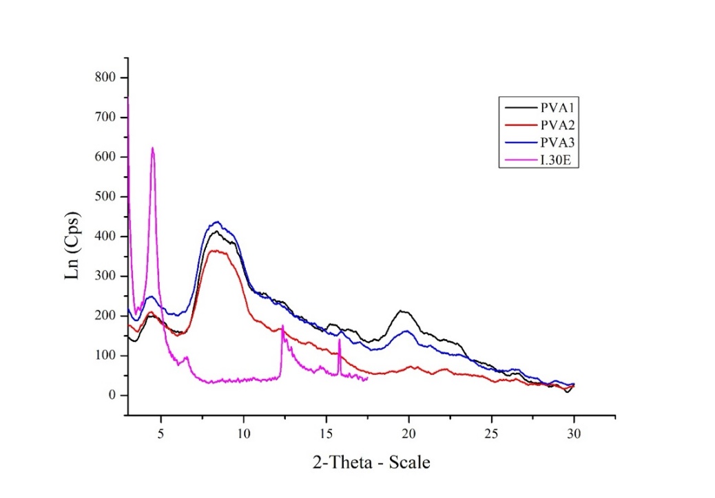 XRD characteristics of PVA/nanoclay coating materials I.30E