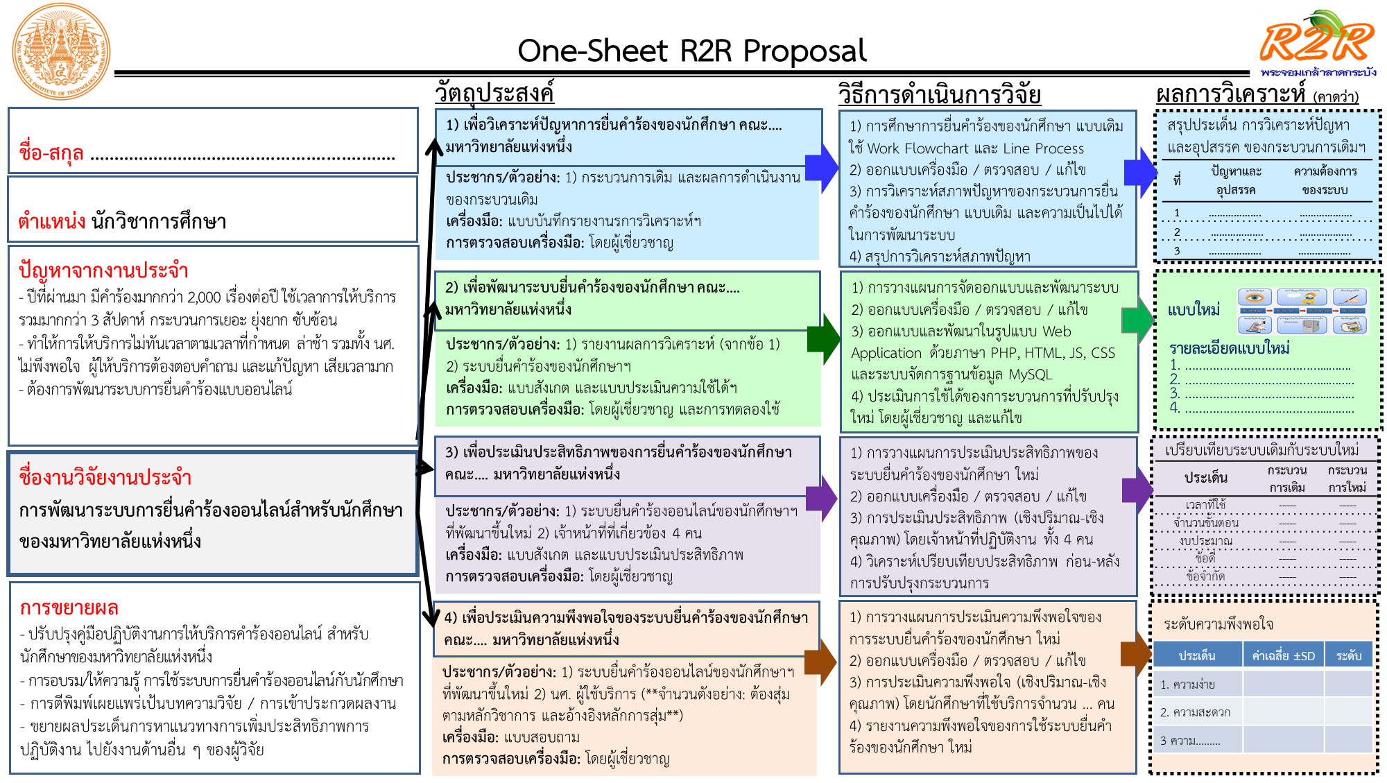 การออกแบบแบบ One-Sheet R2R Proposal: แผนที่เพื่อพัฒนางานประจำอย่างเป็นระบบ