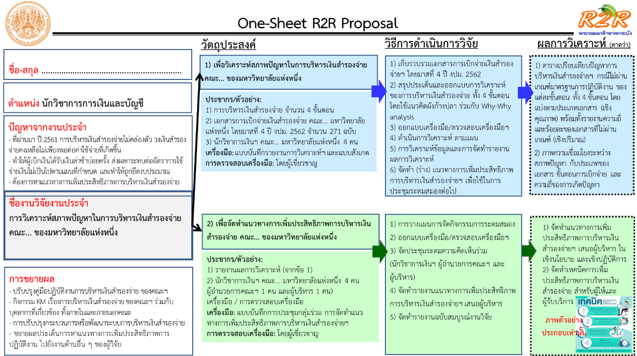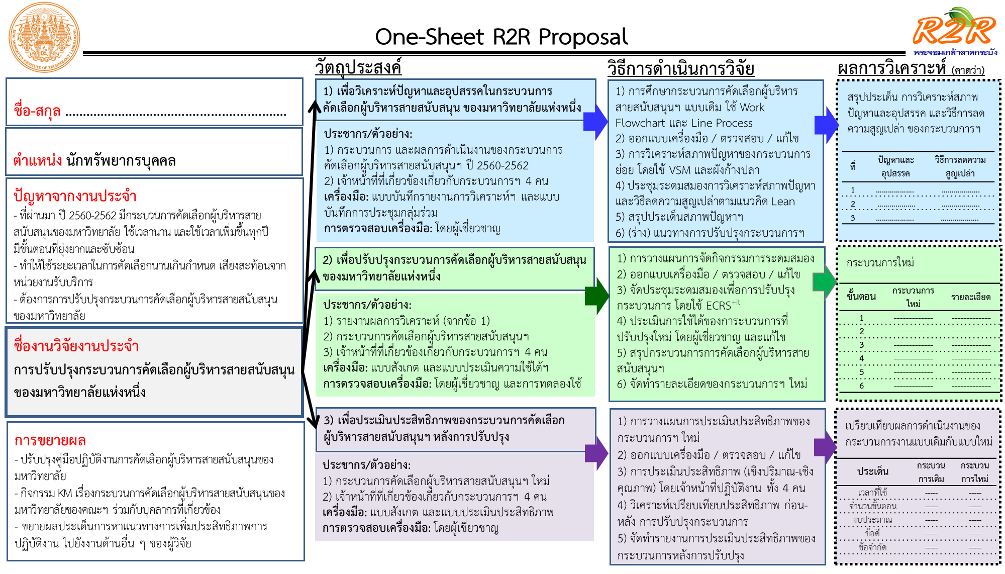 กรณีศึกษา One-Sheet R2R Proposal: การประยุกต์ใช้ในบริบทงานสนับสนุนของสถาบันอุดมศึกษา