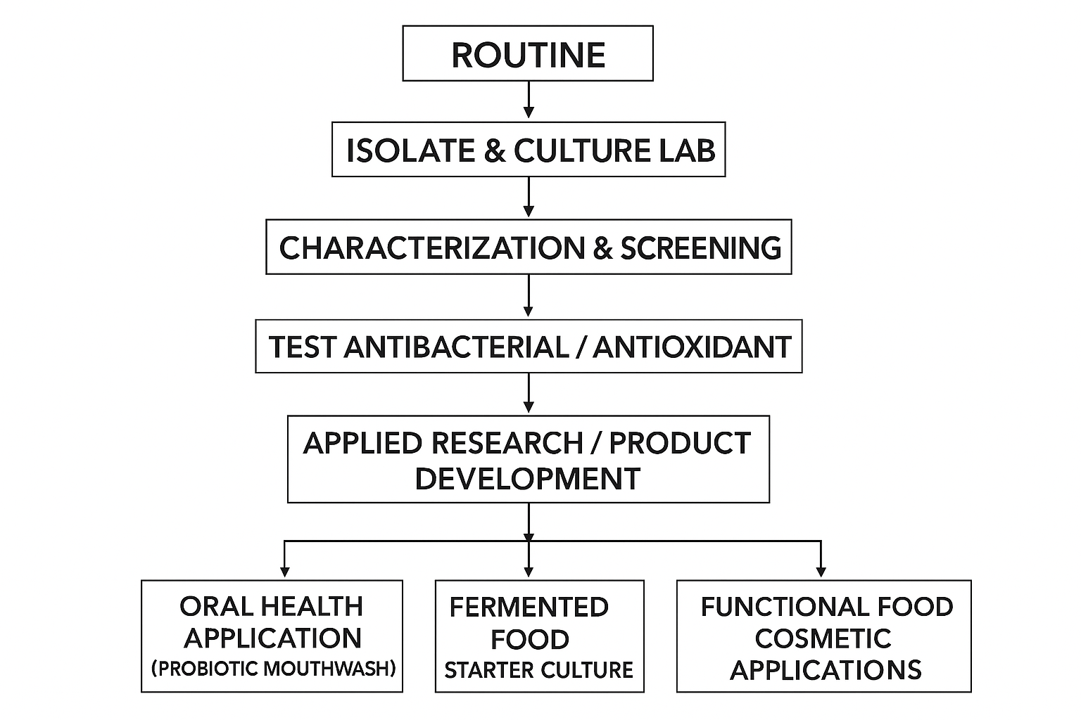 แม้นักศึกษาจะได้รับทักษะทางห้องปฏิบัติการ แต่การเชื่อมโยงระหว่างการทดลอง Routine กับการประยุกต์ใช้ในชีวิตจริงและงานวิจัยยังมีข้อจำกัด การสร้างกิจกรรม Routine-to-Research จึงเกิดขึ้นเพื่อเติมเต็มช่องว่างนี้ โดยมุ่งเน้นการต่อยอดจากการสอนประจำไปสู่การสร้างองค์ความรู้ใหม่และนวัตกรรมที่สามารถนำไปใช้ได้จริงในด้านสุขภาพและชุมชน (Olimpo & Esparza, 2020). แนวคิดนี้ช่วยให้นักศึกษาเห็นภาพรวมของวิธีการทางวิทยาศาสตร์ การพัฒนาเทคนิค และความเป็นไปได้ในการสร้างนวัตกรรมเพื่อสุขภาพและอาหาร รวมถึงเข้าใจบทบาทของจุลินทรีย์พื้นบ้าน เช่น แบคทีเรียกรดแลคติก (Lactic acid bacteria: LAB) ซึ่งมีคุณสมบัติส่งเสริมสุขภาพช่องปาก ต้านเชื้อโรค และช่วยในการหมักอาหาร (Hang et al., 2024; Liu et al., 2025)